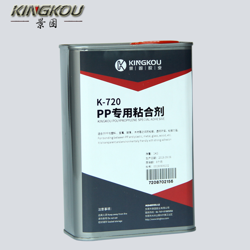 景固KINGKOU K-720 PP(聚丙烯)專用粘合劑 系復(fù)合型合成樹脂膠水,主要用于粘接PP塑料以及PP與其它材質(zhì)的大面積粘接。該膠水粘稠度適中,常溫固化,使用方便,可機(jī)器涂膠、點(diǎn)膠以及人工刷膠。膠水完全固化后呈透明軟質(zhì)狀態(tài),完全不發(fā)白、防水、防蝕、防銹、密封、防水性能好。
