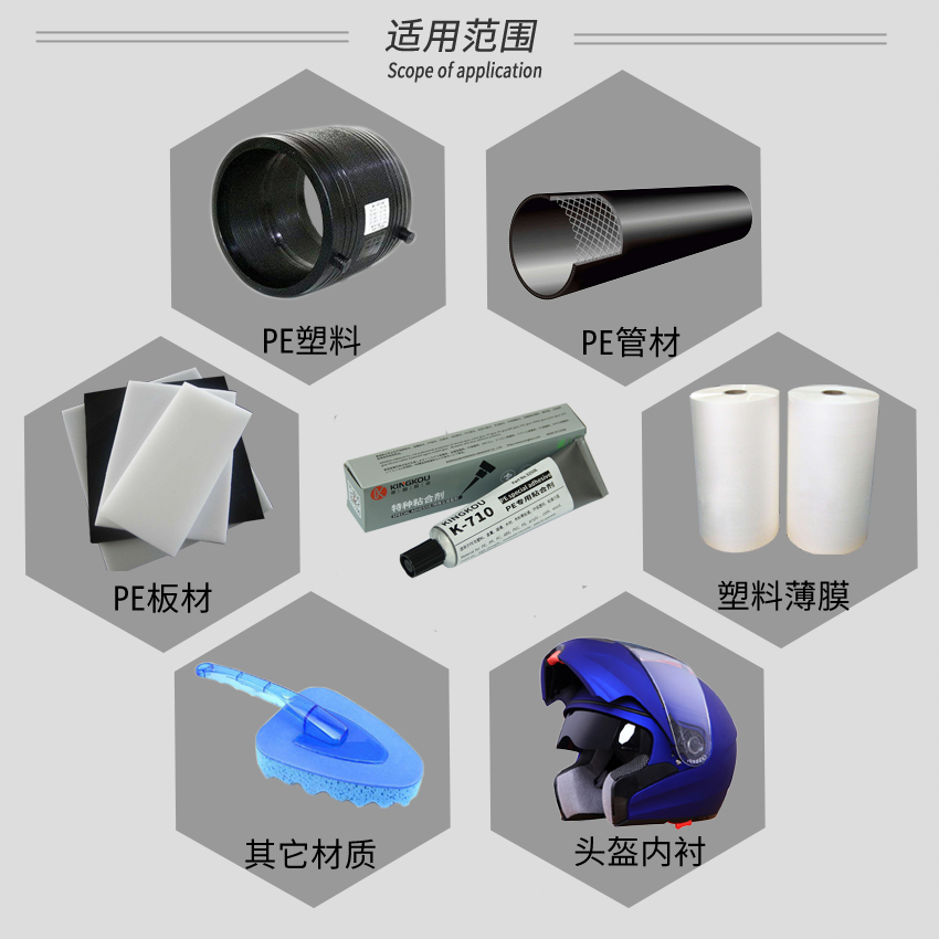 本產(chǎn)品廣泛應用于工業(yè)、生活等各個領域,主要針對大面積PE、PP、PC、ABS、PVC、EVA、亞克力等塑料的粘接,同時也可實現(xiàn)PE與金屬、木材、海綿、絨布、陶瓷等材質(zhì)的粘接。